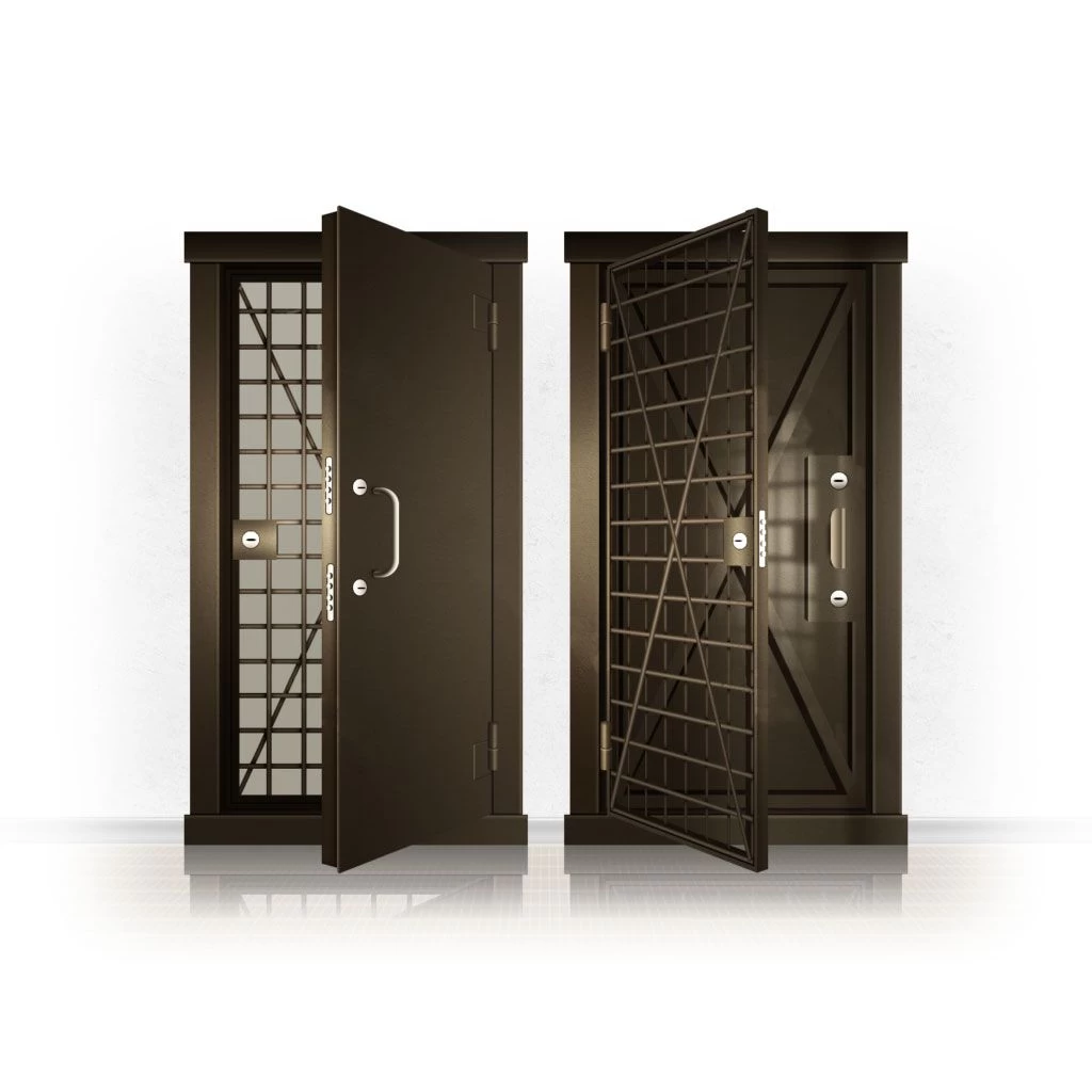 Металлические двери КХО и КХН представляют собой входные блоки, обладающие высоким уровнем взломостойкости и состоят из трех основных элементов: усиленного каркаса, сплошного металлического полотна и решетчатой двери. Дверной блок изготавливается из стального уголка 100*100 мм. Места крепления блока к стене цементируются и закрываются стальными наличниками шириной 40 мм. Крепеж заходит вглубь стены на 80 мм. В конструкции внешней створки монтируются ребра жесткости, для обшивки используется сталь толщиной не менее 3 мм. Внутренняя решетка изготавливается из прутка диаметром 16 мм. Размер ячеек решетки должен составлять не более 15 на 15 см. В точках пересечения прутья надежно приваривают друг к другу. В КХО и КХН необходимо поддерживать определенную температуру и влажность. Для этого внутреннее пространство глухой двери заполняется теплоизоляционным материалом, а по периметру двери приклеивается уплотнитель. Такие двери оборудуются замками с повышенным уровнем взломостойкости. Специализированные двери КХО и КХН в Урае могут быть оснащены сигнализацией, в конструкции могут быть проушины для навесного замка и элементами для опечатывания. Если идет речь о двери в комнату хранения оружия, в створке оборудуется окно для выдачи оружия и спец. средств, которое накрывается стальной дверцей.
