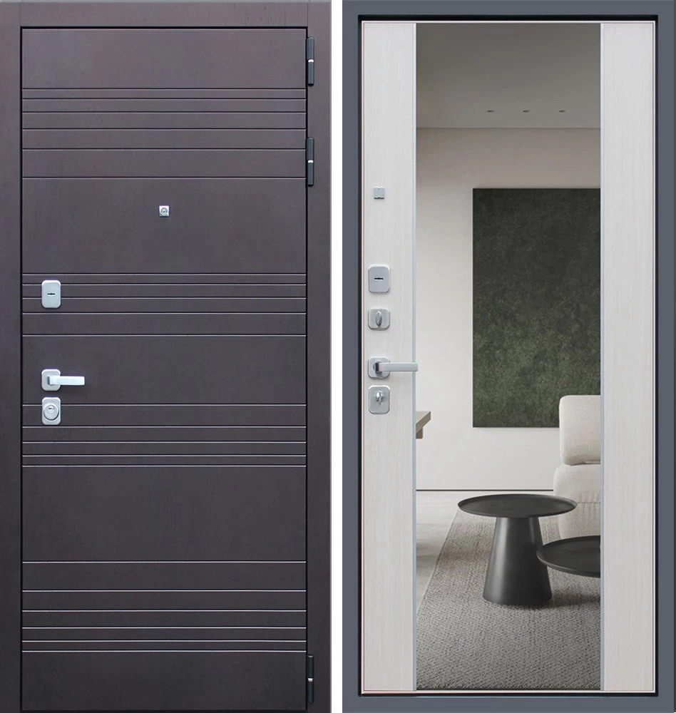 Надежная входная Дверь Дуэт с зеркалом премиум класса по цене 48 130 руб. Большая толщина стали защитит от проникновения в ваш дом, квартиру или коттедж. Используется очень качественная фурнитура: замки, цилиндры, ручки, защелки. Покрытие и отделка двери изготовлено под внимательным контролем производителя. Дверь имеет долгий срок службы и гарантию.