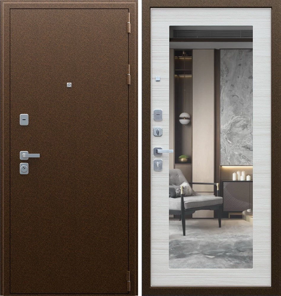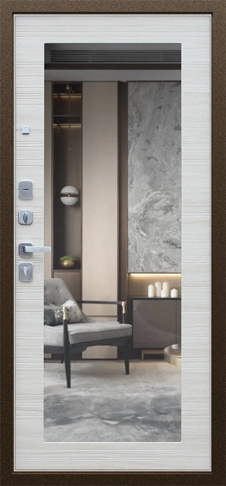 Надежная входная Дверь Спартак с зеркалом Акация Светлая Поперечная премиум класса по цене 37 380 руб. Большая толщина стали защитит от проникновения в ваш дом, квартиру или коттедж. Используется очень качественная фурнитура: замки, цилиндры, ручки, защелки. Покрытие и отделка двери изготовлено под внимательным контролем производителя. Дверь имеет долгий срок службы и гарантию.