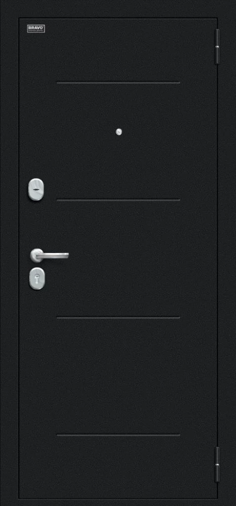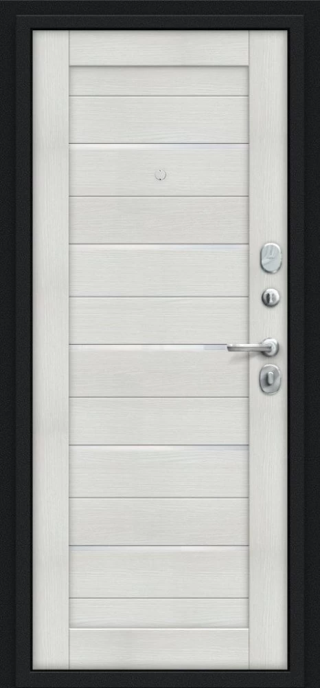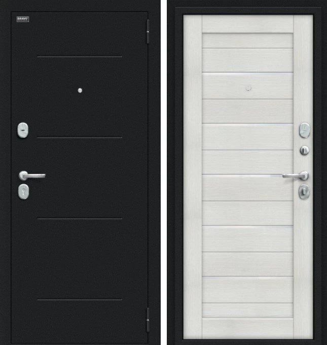 Надежная входная Браво Техно Kale Букле черное/Bianco Veralinga премиум класса по цене 35 130 руб. Большая толщина стали защитит от проникновения в ваш дом, квартиру или коттедж. Используется очень качественная фурнитура: замки, цилиндры, ручки, защелки. Покрытие и отделка двери изготовлено под внимательным контролем производителя. Дверь имеет долгий срок службы и гарантию.