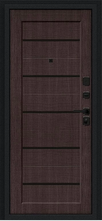 Надежная входная Дверь Браво Борн/SBlack Букле черное/Wenge Melinga премиум класса по цене 32 380 руб. Большая толщина стали защитит от проникновения в ваш дом, квартиру или коттедж. Используется очень качественная фурнитура: замки, цилиндры, ручки, защелки. Покрытие и отделка двери изготовлено под внимательным контролем производителя. Дверь имеет долгий срок службы и гарантию.