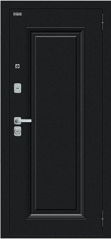 Надежная входная Дверь Браво Флэш МФ/BChrome Букле черное/Bianco Melinga премиум класса по цене 36 080 руб. Большая толщина стали защитит от проникновения в ваш дом, квартиру или коттедж. Используется очень качественная фурнитура: замки, цилиндры, ручки, защелки. Покрытие и отделка двери изготовлено под внимательным контролем производителя. Дверь имеет долгий срок службы и гарантию.