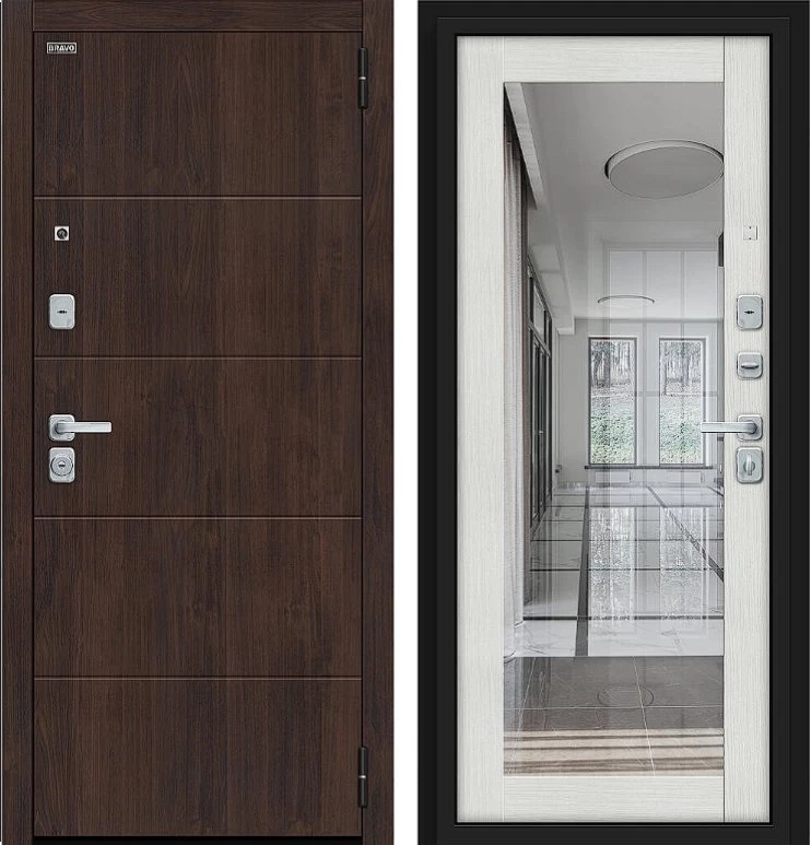 Надежная входная Дверь Браво Флэт/BChrome Almon/Bianco Melinga премиум класса по цене 43 280 руб. Большая толщина стали защитит от проникновения в ваш дом, квартиру или коттедж. Используется очень качественная фурнитура: замки, цилиндры, ручки, защелки. Покрытие и отделка двери изготовлено под внимательным контролем производителя. Дверь имеет долгий срок службы и гарантию.