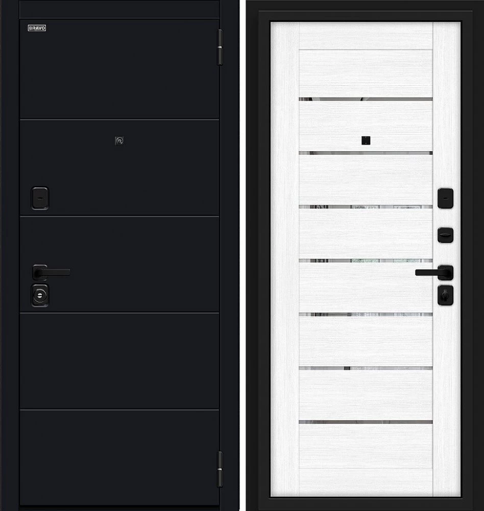 Надежная входная Дверь Браво Прайд Total Black/Snow Melinga премиум класса по цене 40 730 руб. Большая толщина стали защитит от проникновения в ваш дом, квартиру или коттедж. Используется очень качественная фурнитура: замки, цилиндры, ручки, защелки. Покрытие и отделка двери изготовлено под внимательным контролем производителя. Дверь имеет долгий срок службы и гарантию.