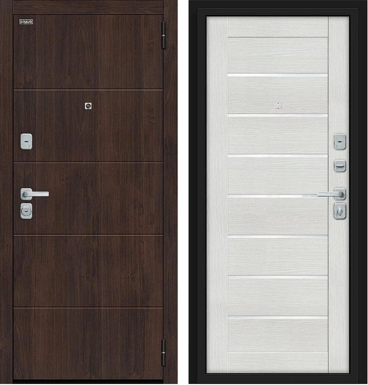 Надежная входная Дверь Браво Прайм/BChrome Almon/Bianco Melinga премиум класса по цене 40 730 руб. Большая толщина стали защитит от проникновения в ваш дом, квартиру или коттедж. Используется очень качественная фурнитура: замки, цилиндры, ручки, защелки. Покрытие и отделка двери изготовлено под внимательным контролем производителя. Дверь имеет долгий срок службы и гарантию.