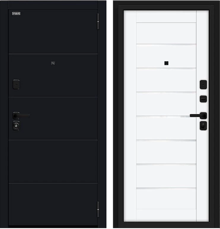 Надежная входная Дверь Браво Прайм/SBlack-Black Shell/White Silk премиум класса по цене 41 180 руб. Большая толщина стали защитит от проникновения в ваш дом, квартиру или коттедж. Используется очень качественная фурнитура: замки, цилиндры, ручки, защелки. Покрытие и отделка двери изготовлено под внимательным контролем производителя. Дверь имеет долгий срок службы и гарантию.