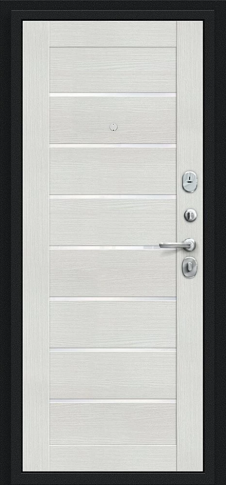 Надежная входная Дверь Браво Техно Букле черное/Bianco Veralinga премиум класса по цене 32 230 руб. Большая толщина стали защитит от проникновения в ваш дом, квартиру или коттедж. Используется очень качественная фурнитура: замки, цилиндры, ручки, защелки. Покрытие и отделка двери изготовлено под внимательным контролем производителя. Дверь имеет долгий срок службы и гарантию.