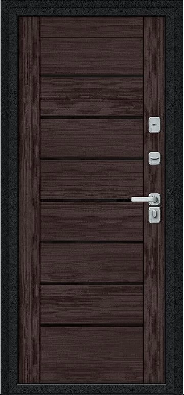 Дизайнерская входная Дверь Браво Thermo Техно Д2/BChrome Букле черное/Wenge Melinga класса Люкс с несколькими листами стали, звукоизоляцией и теплоизоляцией. Утепленный короб и полотно защитят от сквозняков и шумов. Модель не только надежная, комфортная, защищенная и высочайшего качества, но и очень красивая! Будет отлично сочетаться с интерьером дома, квартиры или офиса. Сейчас действует выгодное предложение по цене: 58 630 руб.