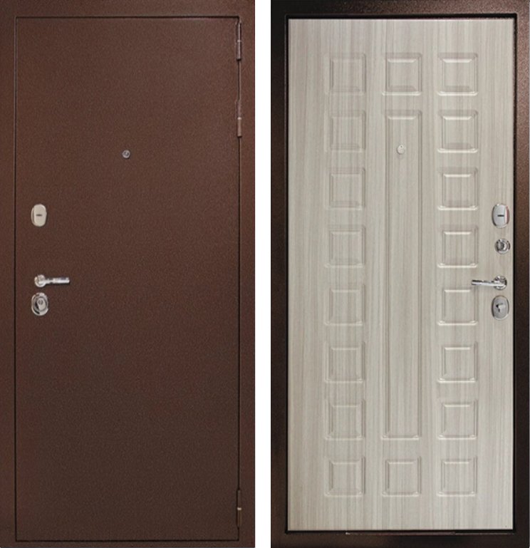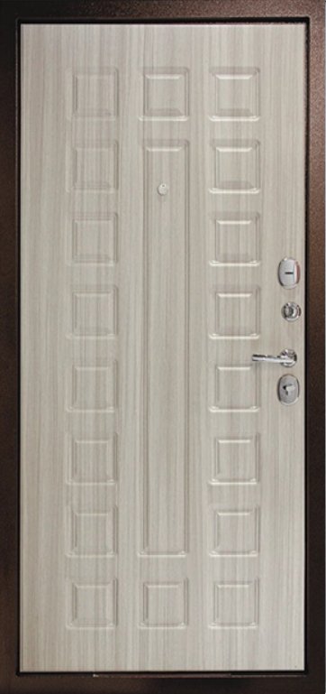 Надежная входная Дверь Рубикон 1 Медь Сандал белый премиум класса по цене 33 700 руб. Большая толщина стали защитит от проникновения в ваш дом, квартиру или коттедж. Используется очень качественная фурнитура: замки, цилиндры, ручки, защелки. Покрытие и отделка двери изготовлено под внимательным контролем производителя. Дверь имеет долгий срок службы и гарантию.
