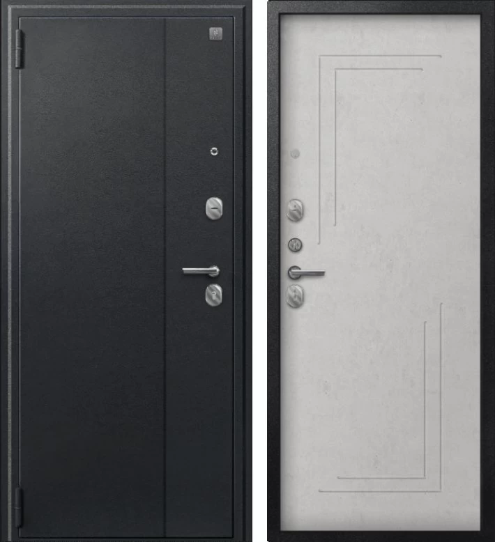 Надежная входная Дверь A-06 черный сатин - бетон светлый премиум класса по цене 30 710 руб. Большая толщина стали защитит от проникновения в ваш дом, квартиру или коттедж. Используется очень качественная фурнитура: замки, цилиндры, ручки, защелки. Покрытие и отделка двери изготовлено под внимательным контролем производителя. Дверь имеет долгий срок службы и гарантию.