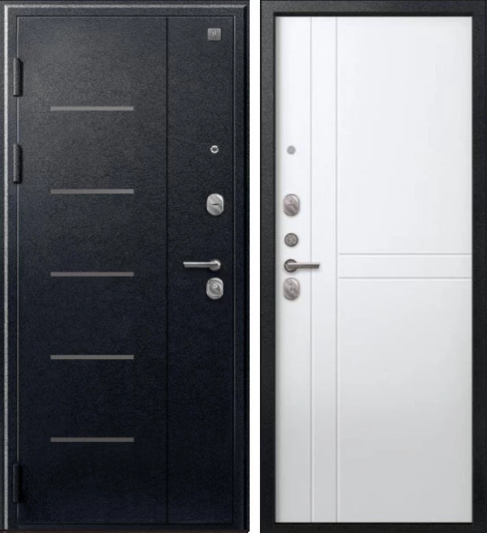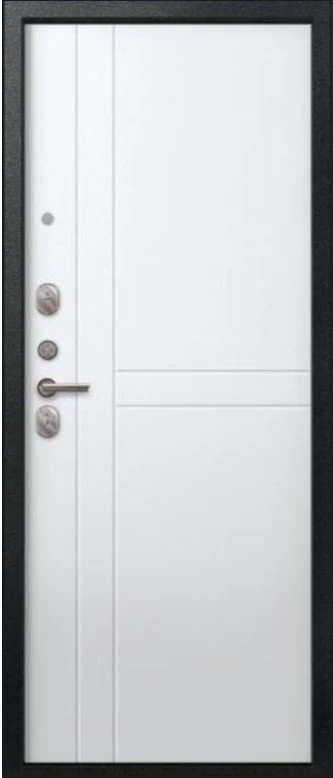 Надежная входная Дверь V-06 Черный муар - Белый премиум класса по цене 39 730 руб. Большая толщина стали защитит от проникновения в ваш дом, квартиру или коттедж. Используется очень качественная фурнитура: замки, цилиндры, ручки, защелки. Покрытие и отделка двери изготовлено под внимательным контролем производителя. Дверь имеет долгий срок службы и гарантию.