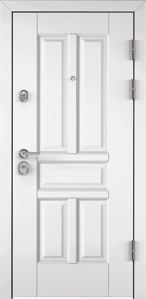 Надежная входная Дверь Цербер 3К Чёрный муар Мистраль Белый Сменная панель премиум класса по цене 43 380 руб. Большая толщина стали защитит от проникновения в ваш дом, квартиру или коттедж. Используется очень качественная фурнитура: замки, цилиндры, ручки, защелки. Покрытие и отделка двери изготовлено под внимательным контролем производителя. Дверь имеет долгий срок службы и гарантию.